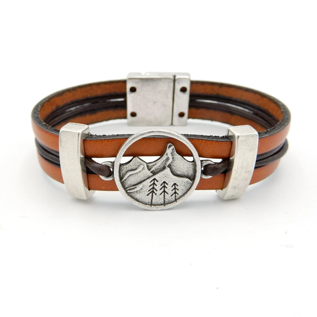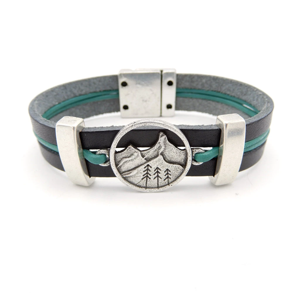 Show your love for the mountains with this stylish LILO 3 Pine Mountain leather bracelet. Makes a great gift for the outdoors enthusiast! 7″ diameter, Magnetic clasp, Handmade in the USA
