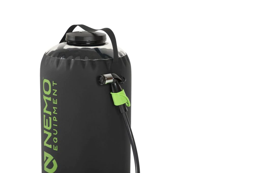 Refill Helio™ anywhere, even without a hose. The 7-foot neoprene hose is long enough to hold it overhead for a shower, or to reach all angles of dirty gear, muddy paws, or salty wetsuits. Pair with Heliopolis™ privacy shelter, which has a fitted nozzle holder for hands-free overhead showering, for the ultimate home-away-from-home shower in the backcountry.