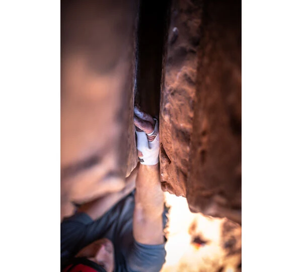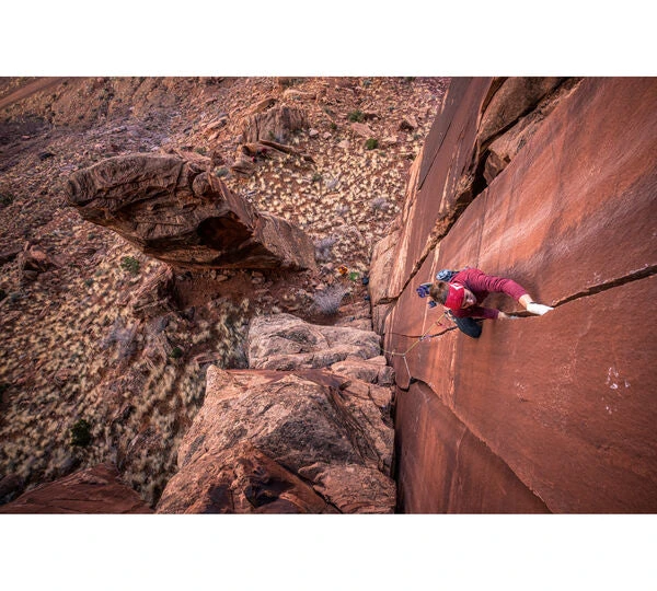 Black Diamond set out with one goal: to create the best fitting, highest performance crack gloves on the market. Utilizing 3D patterning that gives an articulated fit and featuring a synthetic Suede for maximum abrasion resistance and breathability, the BD Crack Gloves are swanky. The 0.6mm rubber adhesive film is set into a molded depression making a seamless surface transition from suede to rubber—resulting in the overall glove thickness of less than 1mm and which provides the perfect balance of protection, dexterity, and grip. The Hypalon strap provides a thin, low-profile closure that’s strong and secure for jamming, and the flat-stitched patterning reduces bulk and increases comfort. The BD Crack Gloves’ white color reduces heat uptake during mega pitches in the desert sun, and also mimic the classic tape glove construction for superior fit.