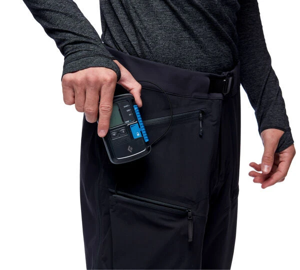 The Dawn Patrol Hybrid Pants are built for going deep in the backcountry. By utilizing our proprietary BD.dry™ waterproof/breathable solution on key areas that require protection, while featuring a breathable softshell fabric on crucial panels that are prone to overheating, the Dawn Patrol Hybrid Pant brings exactly what you need to a day of touring—uphill performance and freedom, downhill security for getting pitted. Side-zip vents add temperature regulation and two thigh pockets—one being a dedicated pocket for beacon storage—and a smaller upper right hip pocket allow you to stow backcountry essentials. An integrated RECCO reflector adds to the pants’ snow safety capabilities, while the instep patches guard against ski edges and crampon points. There is a stretch gaiter and the cuffs feature dual snap closures to accommodate both racing and touring boots. The integrated belt provides waist adjustment along with internal loops to allow for suspender compatibility.