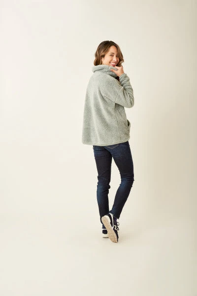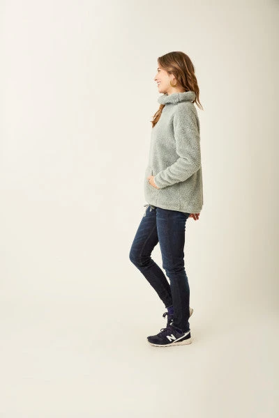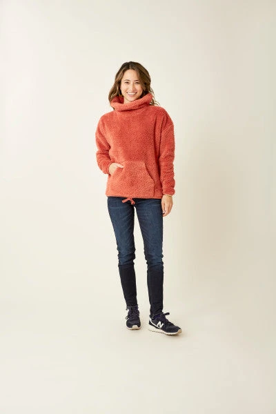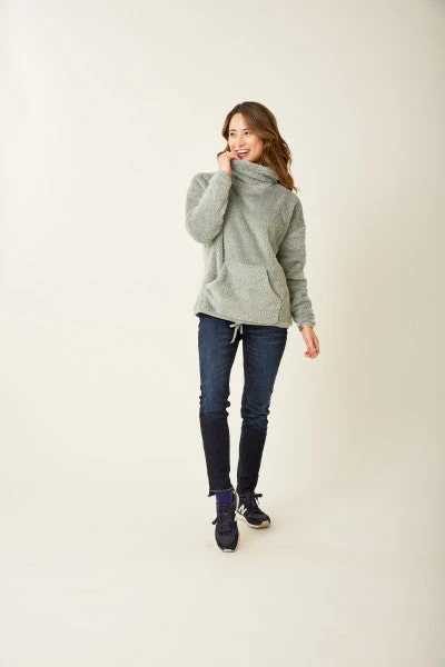 With a kangaroo pocket and stand up neck, this loose fitting sherpa pullover takes comfort to the next level.