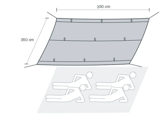 Versatile shelter for 3-4 people. Attachment loops for Exped Mosquito Nets make this tarp extremely versatile. Corner pockets hold guylines. Loops on edges for additional guylines (4 included) ensure versatile setup. 8 pegs allow the tarp to be anchored securely.