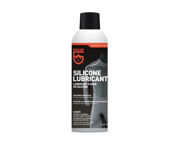 Slide easily in and out of your wetsuit with Silicone Lubricant spray, which also protects gear from the harmful effects of saltwater. The food-grade silicone formula preserves rubber gaskets and neoprene, to make expensive dive gear last longer. Lubricate sensitive rubber parts and protect neoprene dive equipment from salt, corrosion and oxidation, with the Silicone Lubricant Spray by GEAR AID.