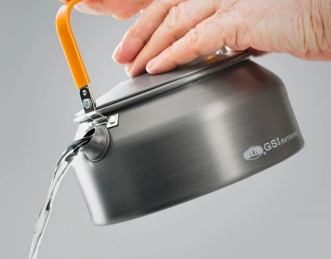 The Halulite Tea Kettle is an ultralight kettle for family campers and backpackers who demand efficiency in weight and fuel economy in a traditional kettle design.