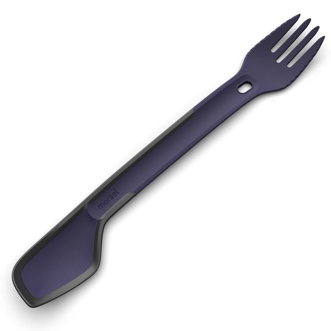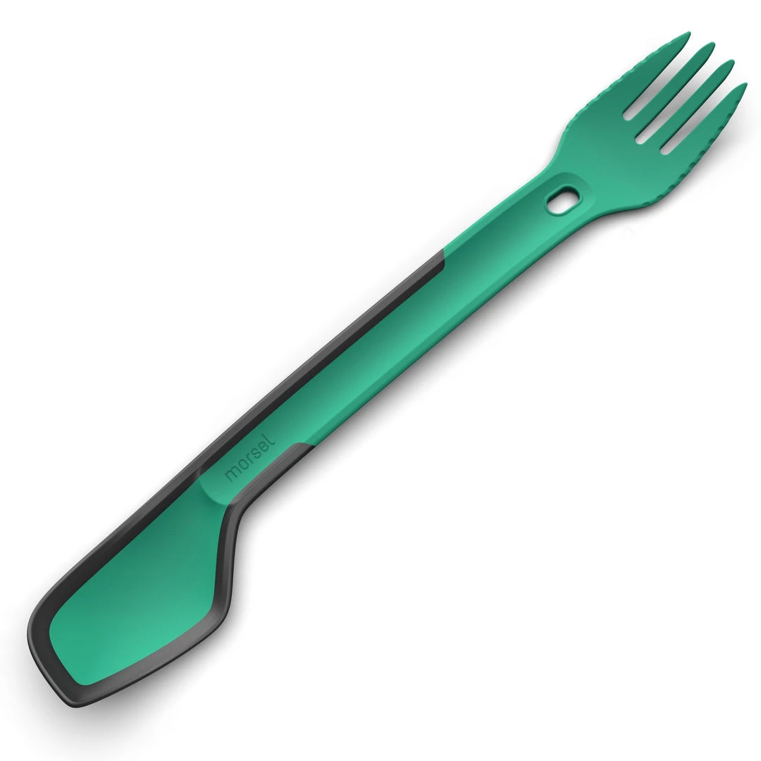 - 5 IN 1 COMBO CUTLERY SET: Morsel is the world’s first part spoon, fork and spatula with a strong knife edge for cutting – resulting in an all-round camping dining tool. The fork as well as the spoon works like conventional cutlery, the spatula helps to enjoy your meal until the very last bite.