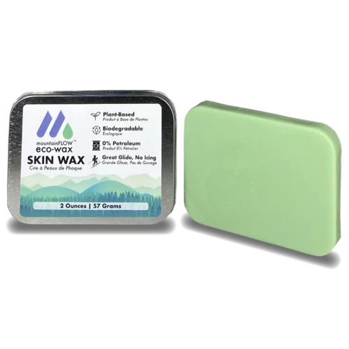 mountainFLOW’s rub-on skin wax helps prevent icing on climbing skins (which is the worst!)
