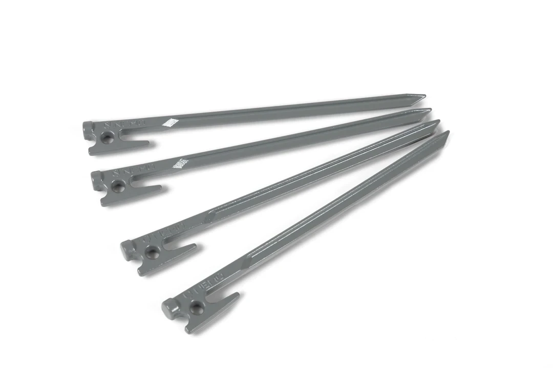Javelin™ is a bombproof forged steel stake with a cleat locking system that streamlines cord tensioning. The wide head for striking makes it easy to drive it into the ground, and the T-shape construction is strong enough to withstand errant blows and tough rocks.
