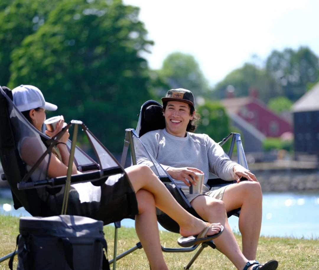The next generation in camp comfort, Stargaze™ Recliner Luxury has been re-engineered for even more comfort and stability, with a lower center of gravity and extended fit range. This first ever swinging and reclining camp chair, takes relaxation to a new level. The swinging offers an exciting new sitting experience, with a relaxing motion that is designed for comfort. And when you’re ready to recline, simply lean back to activate the auto-reclining mechanism and enjoy a great view of the stars. Unlike rocking chairs, this chair is designed for use on any surface, including rocky, sandy or uneven ground, bringing the relaxation of motion to a host of new environments. The aircraft grade aluminum is designed to flex while you swing, dynamically suspending you in the air for an entirely new sitting experience. The deep lounge position is hard to beat. And Stargaze™ has all the little comforts you love, including an adjustable headrest, a no-spill cupholder and a stash pocket to keep your little things close at hand. This is the chair you’ll want to take to camp, the beach, tailgating, your backyard or even your kid’s soccer game sidelines. The chair set-up is intuitive and easy, with just three quick steps so you can set it up and pack it up into the included padded carrying case quickly. The case comes with a shoulder strap and has room for you to stash your phone and keys. You’ll never think of sitting in the same way!