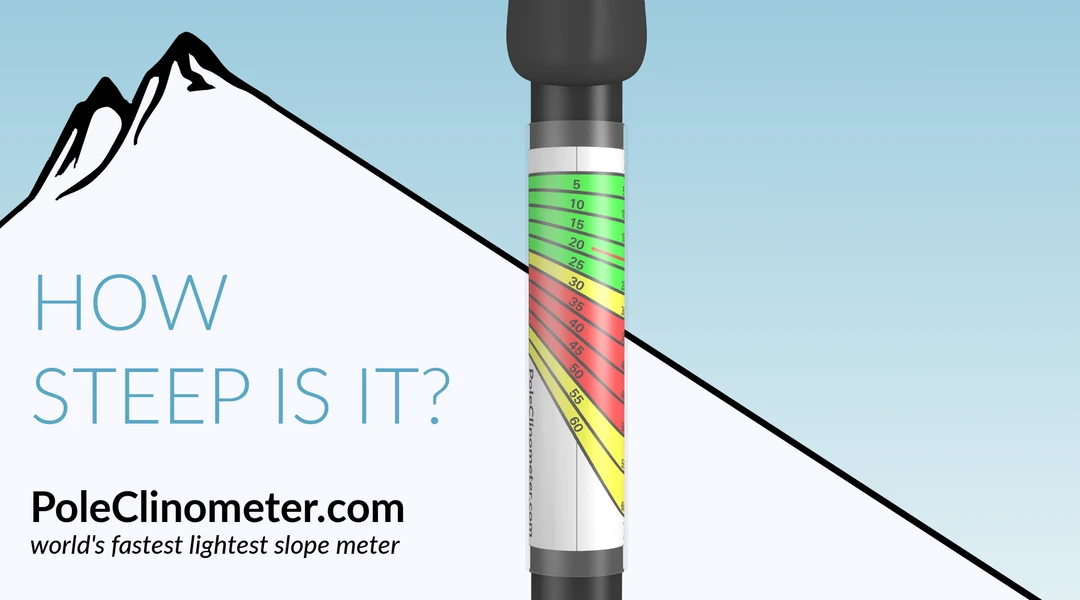 Knowing slope angle is a critical factor in assessing avalanche hazard. The PoleClinometer slope meter is the quickest and easiest way to get accurate “on the go” slope angle measurements. It’s a sticker you put on your ski pole that lets you measure slope angles by line-of-sight. Who knew 0.02 ounces could save your life?