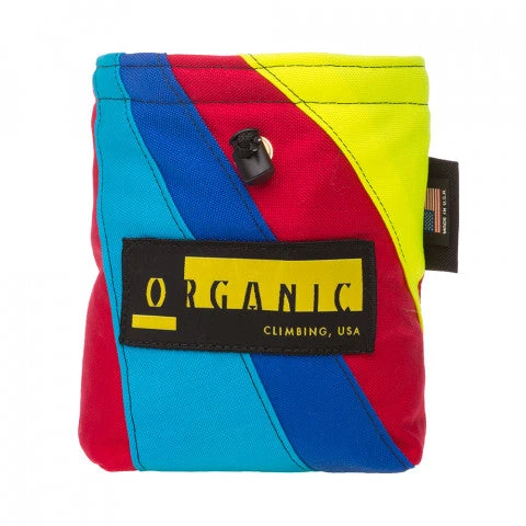 The ultimate climbing accessory, you can never have too many chalk bags! Guaranteed to be one-of-a-kind, Organic chalk bags are built from recycled cutting scraps from the production of pads and other items in the workshop. Now updated with a super stiff rim for easy chalking and a clean aesthetic. Made from your choice of colors in assorted one-of-a-kind designs by recycling cutting scraps, the Chalk Bag includes waist belt. 1000d Cordura nylon shell with Polyester fleece liner.