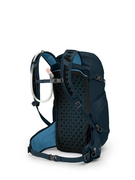 Featuring a time-honored yet fresh rucksack design and bucket-style opening for straightforward packing, the Skarab 30 is ready for adventure anywhere. Whether youโre heading to a music festival or hiking up a mountain, stay hydrated all day long with an included 2.5-liter reservoir. Ospreyโs proven AirScape suspension and backpanel provides superior comfort and ventilation, dedicated attachment points secure your trekking poles when you need two hands, zippered side panel pockets offer plenty of options for organizing your stuff, and a front panel pocket is the perfect place to shove that extra layer. When you’re not stuffing the pack full, stabilize your load with dual upper and lower compression straps. You probably think we forgot about the snacks. (Please.) Zippered side hipbelt pockets keep food and other small items at the ready.