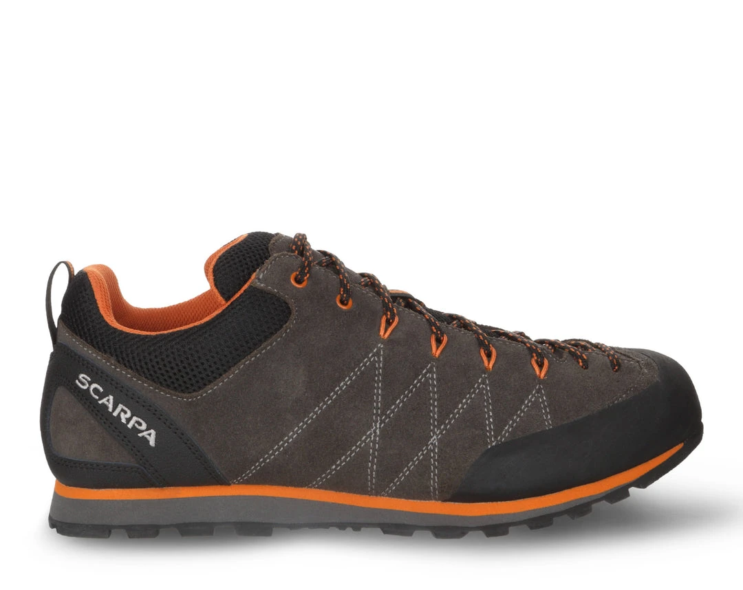 Scarpa’s most versatile and durable approach shoe with a streamlined design, the best-selling Crux features a full-coverage toe rand, sticky Vibram® sole and lace-to-toe design for ample support and protection on slabby scrambles, loose talus and rugged descents.