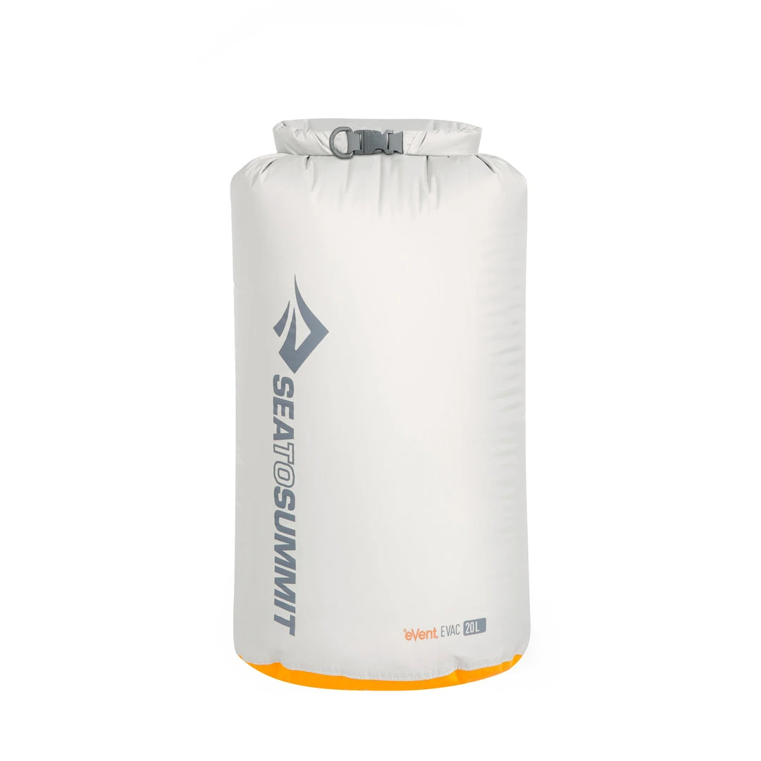 The eVac™ Dry Sack utilizes 70D lightweight nylon fabric for strength and eVent® waterproof fabric on the base to allow eVac-uation of air for compression. It’s an excellent option for storing and compressing clothes and sleeping bags without the use of straps. Just pack the items in, roll the sack down and push the air out to save valuable packing space within your backpack. They’re an oval shape, making them perfect for sliding into the contours of your pack and all seams are double stitched and tape-sealed.